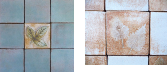 The leaf-cut tiles use the flora found in our own managed woodlands growing in the same clay that forms the base from which all of our products are made.